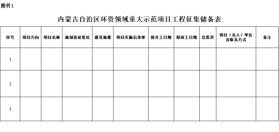 1. 内蒙古自治区环资领域重大示范项目工程征集储备表