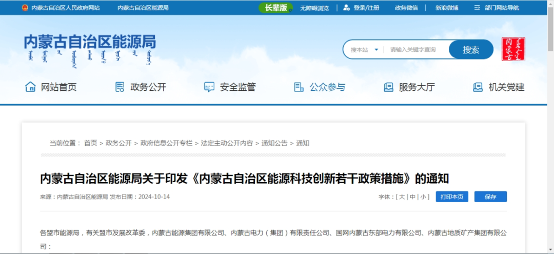 内蒙古能源局发布《内蒙古自治区能源科技创新若干政策措施》的通知