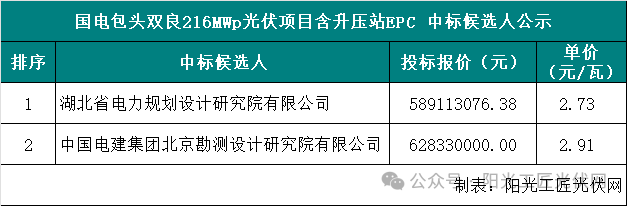 2.73元/瓦丨国电电力包头双良60万千瓦绿色供电项目180MW升压站及光伏区EPC总承包中标候选人公示