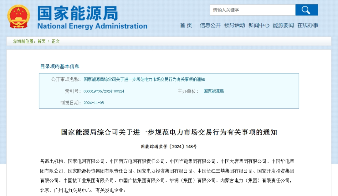 国家能源局综合司关于进一步规范电力市场交易行为有关事项的通知