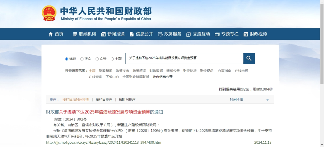 内蒙古1.8亿元,财政部发布《关于提前下达2025年清洁能源发展专项资金预算的通知》